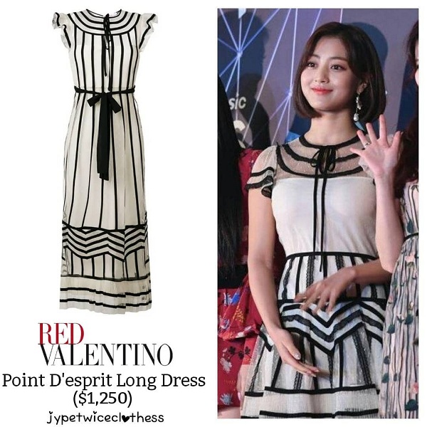 Mẫu váy đẹp mơ màng của Valentino có diện mạo mới hoàn toàn khi được tiết chế bớt độ dài để phù hợp hơn với vóc dáng của Jihyo.