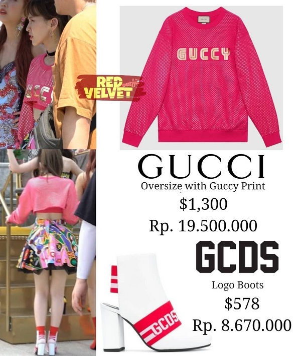 Red Velvet cũng là nhóm nhạc các thành viên chịu khó cắt xén váy áo. Mẫu áo dáng dài của Burberry được tái chế thành bộ váy rời giúp Irene tự tin hơn khi xuất hiện.