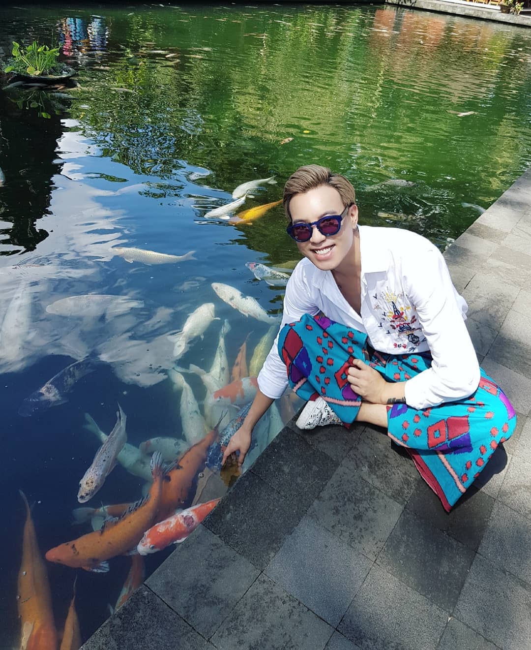 Stylist Mạch Huy đem lại không khí ngày hè khi chưng diện quần họa tiết rực rỡ cùng áo sơ-mi màu sắc.