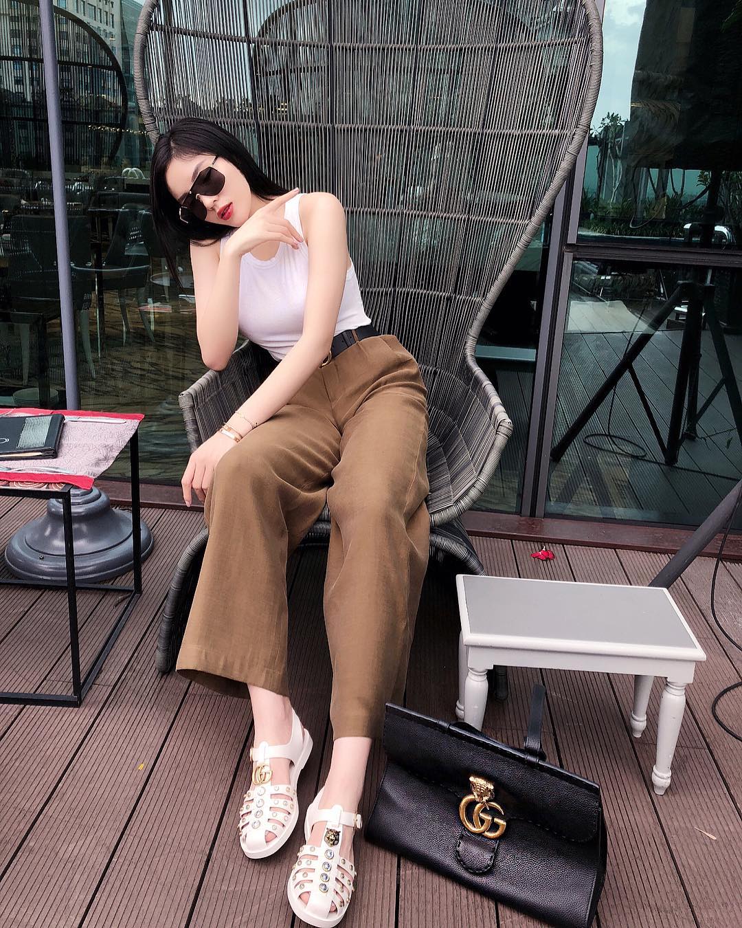 Phong cách đơn giản, sành điệu lại tiếp tục được Kỳ Duyên trưng dụng. Nàng hậu chứng tỏ độ thời thượng bằng set đồ gam màu camel, nhấn nhá bởi hàng loạt phụ kiện đắt giá.