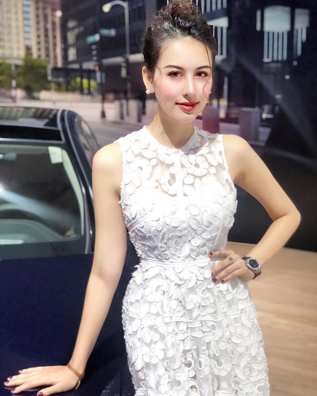Gương mặt thanh tú, vóc dáng chuẩn hoàn toàn phù hợp với bộ váy ren mà Hà Lade đang diện.
