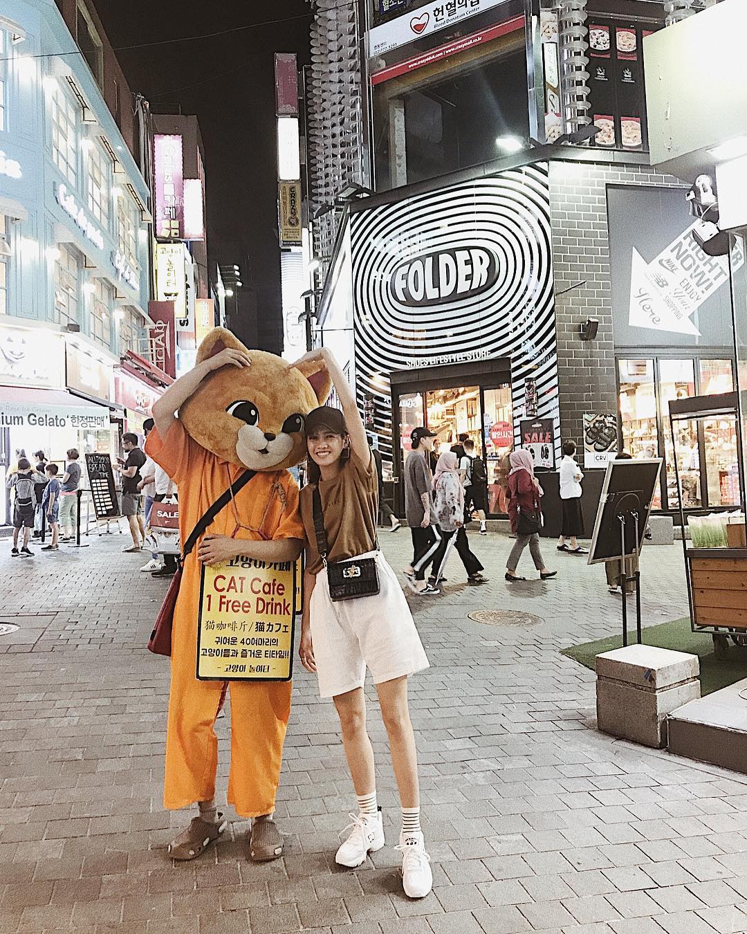 Mỹ Duyên The Face lựa chọn cây đồ đơn giản khi vi vu tại nước ngoài. Tuy nhiên, có thể thấy người đẹp vẫn rất tinh ý trong cách mix màu, khiến trang phục không bị “chỏi”.