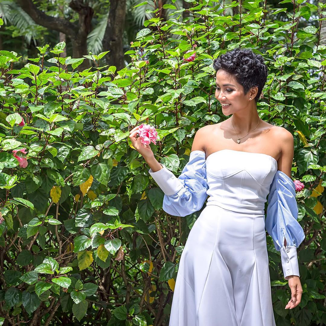 Tóc ngắn xoăn tít cá tính, váy cúp ngực tay phồng dịu dàng, H'Hen Niê thật biết cách khiến khán giả chú ý khi kết hợp những gì tưởng chừng không liên quan nhưng lại cho ra tổng thể phù hợp.