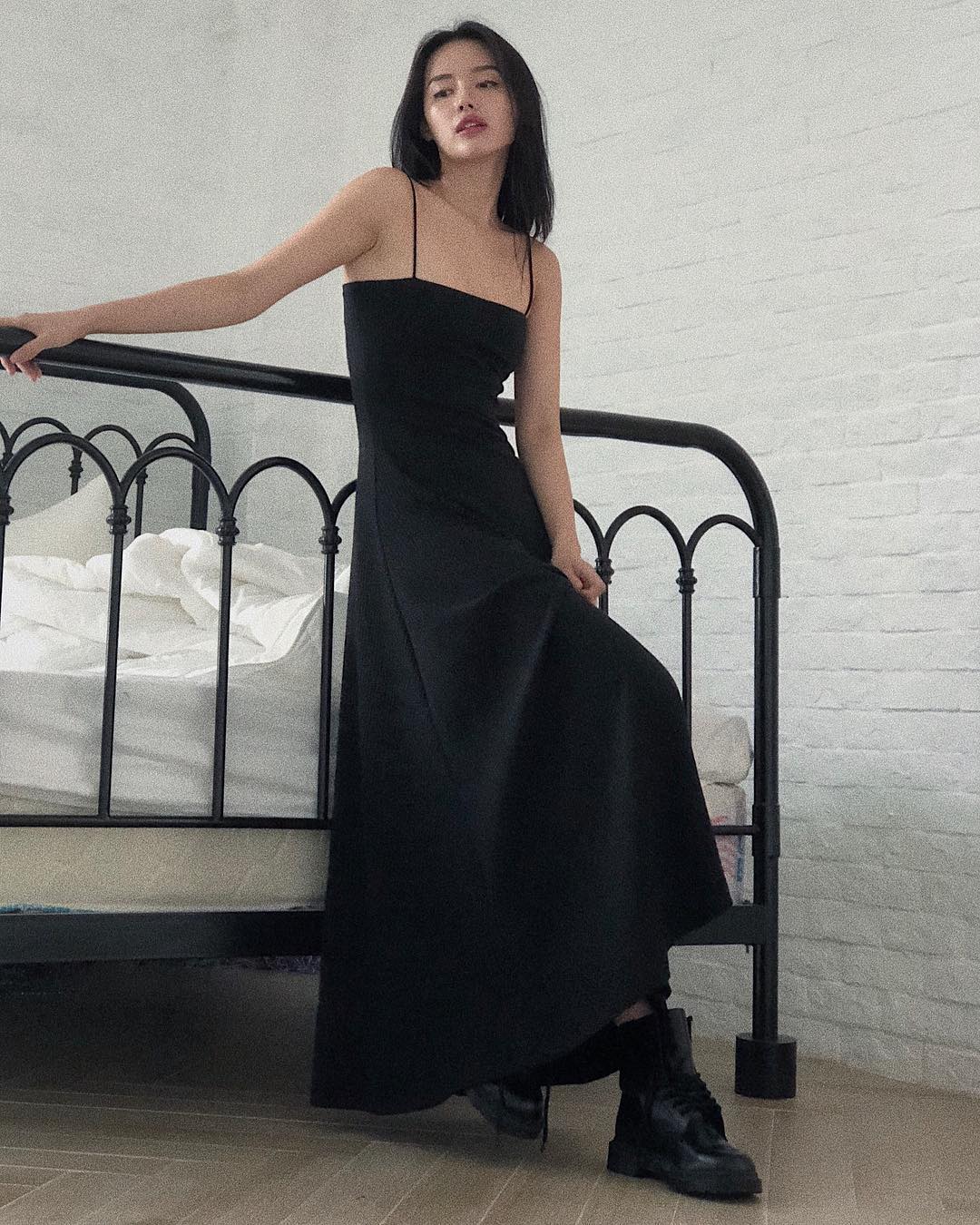 Sở hữu gu ăn mặc thời thượng, tinh tế, Khánh Linh The Face tiếp tục khiến giới mộ điệu “phát cuồng” khi mix váy dài cùng boots cao cổ.