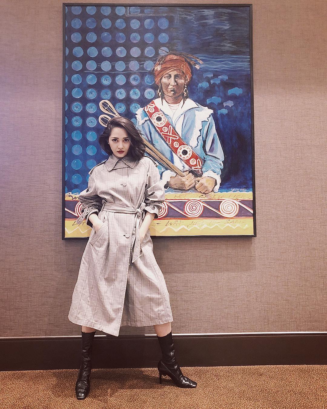 Diện set đồ kín như bưng từ váy áo măng tô đến boots cổ cao, ấy thế mà Bảo Anh vẫn thu hút thiên hạ bởi cách tạo dáng vô cùng thời thượng.
