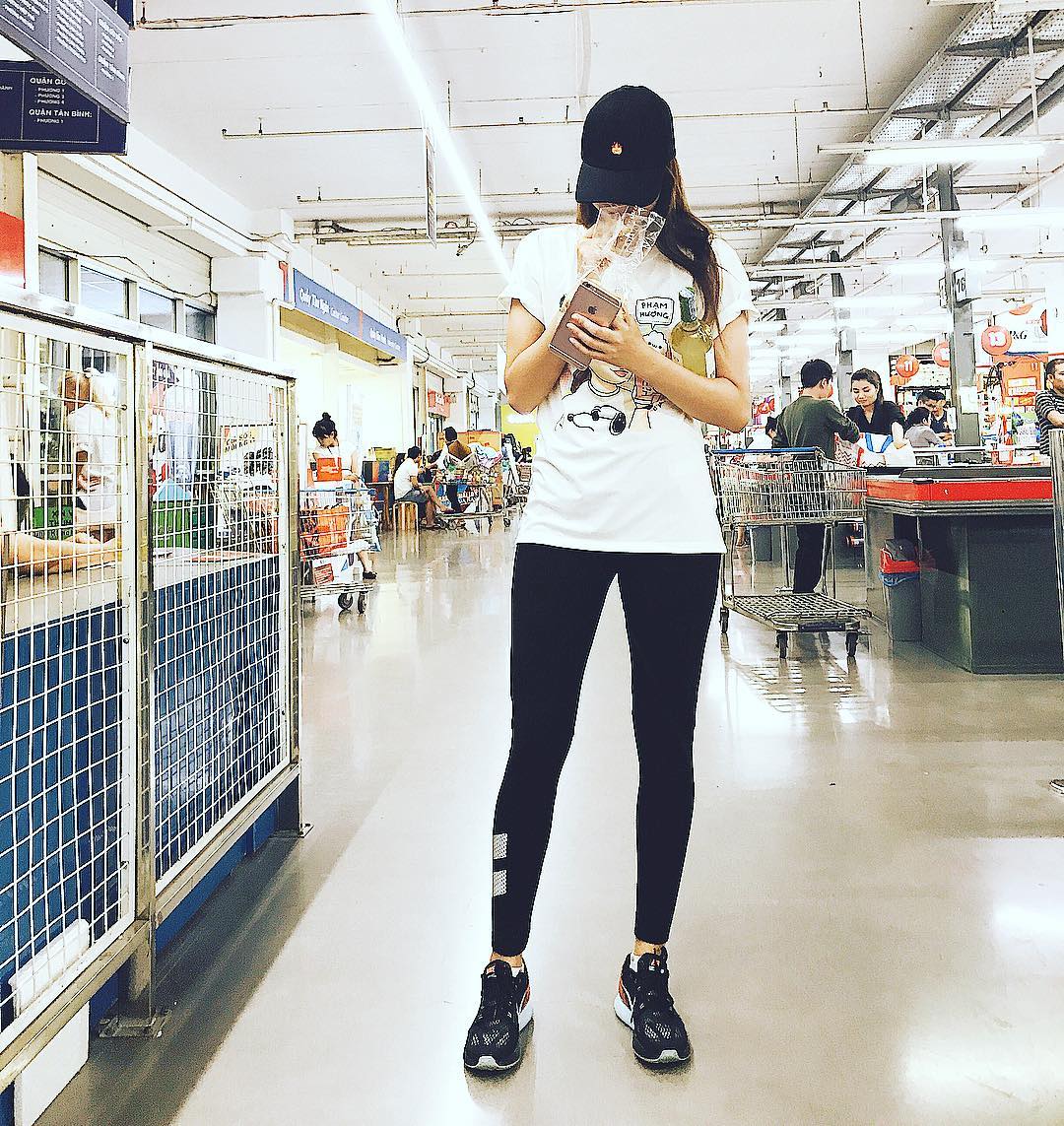 Phạm Hương ăn mừng dịp lễ 2/9 bằng việc một mình đi siêu thị. Vốn trung thành với phong cách streetstyle thể thao, cá tính, “nữ hoàng Ong chúa” Bee chẳng cần diện cao gót hay đầm váy lộng lẫy cũng đủ ghi điểm với body siêu chuẩn.