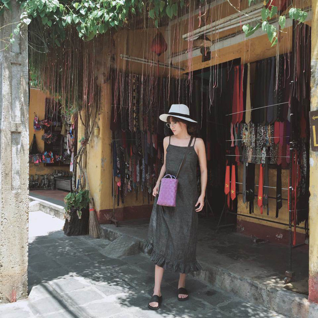 Chiếc váy của nữ ca sĩ Bích Phương mua với giá 15 ngàn đồng nhưng vẫn đẹp hết nấc giúp cô khoe được vẻ mỏng manh trong chuyến du lịch Hội An.