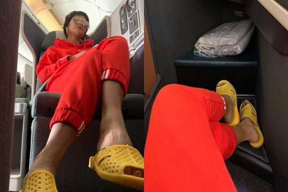 Trong các chương trình thiện nguyện, khi xuất hiện tại sân bay, cô thoải mái mang “đôi dép huyền thoại” với giá vài chục ngàn đồng này.