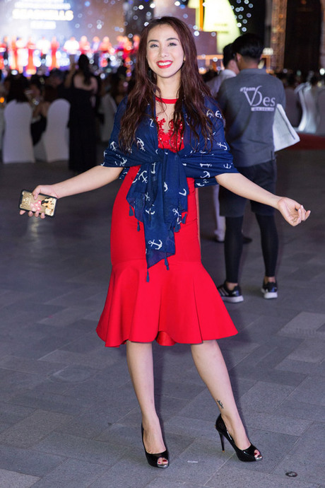 Chiếc váy sexy không xấu, mũ đội đầu đẹp, dây lưng bản to rất mốt nhưng khi mix chung với nhau lại góp phần khiến vẻ ngoài của BB Trần trở nên rườm rà. Hơn nữa, bộ cánh này được nhận xét phù hợp khi xuất hiện tại lễ hội hóa trang, carnival hơn là trong một sự kiện.
