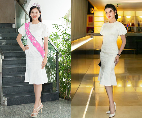 Chỉ sau nửa tháng đăng quang, nhưng có thể thấy Tiểu Vy đã sở hữu một bộ sưu tập đụng hàng với hàng loạt sao Việt đình đám. Chiếc váy này cũng chẳng ngoại lệ.