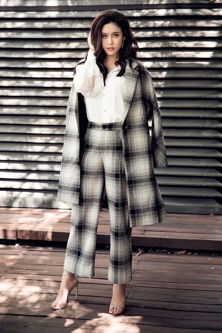 Cách sử dụng quần kẻ cũng là một sự lựa chọn mới mẻ được nữ diễn viên sinh năm 1989 gợi ý.