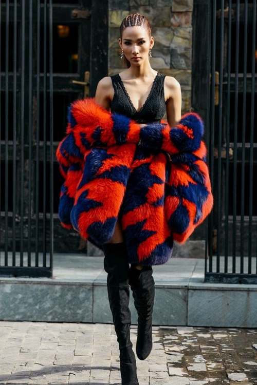 Thiết kế của Đỗ Long giúp Hoàng Thùy khoe được chiều cao nổi trội và có phần nữ tính hơn so với set đồ áo lông 500 triệu của NTK Linh Đoàn trước đó.
