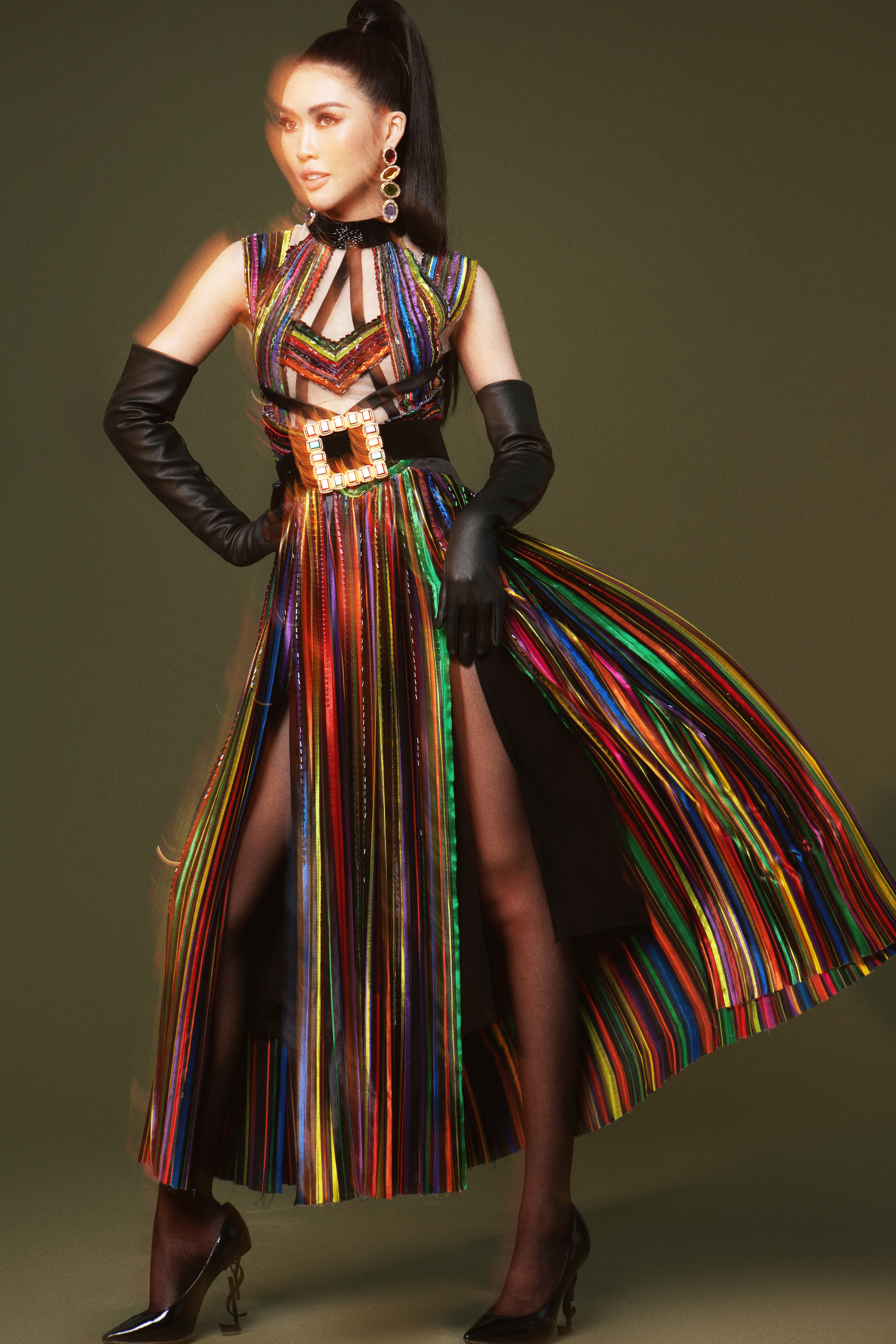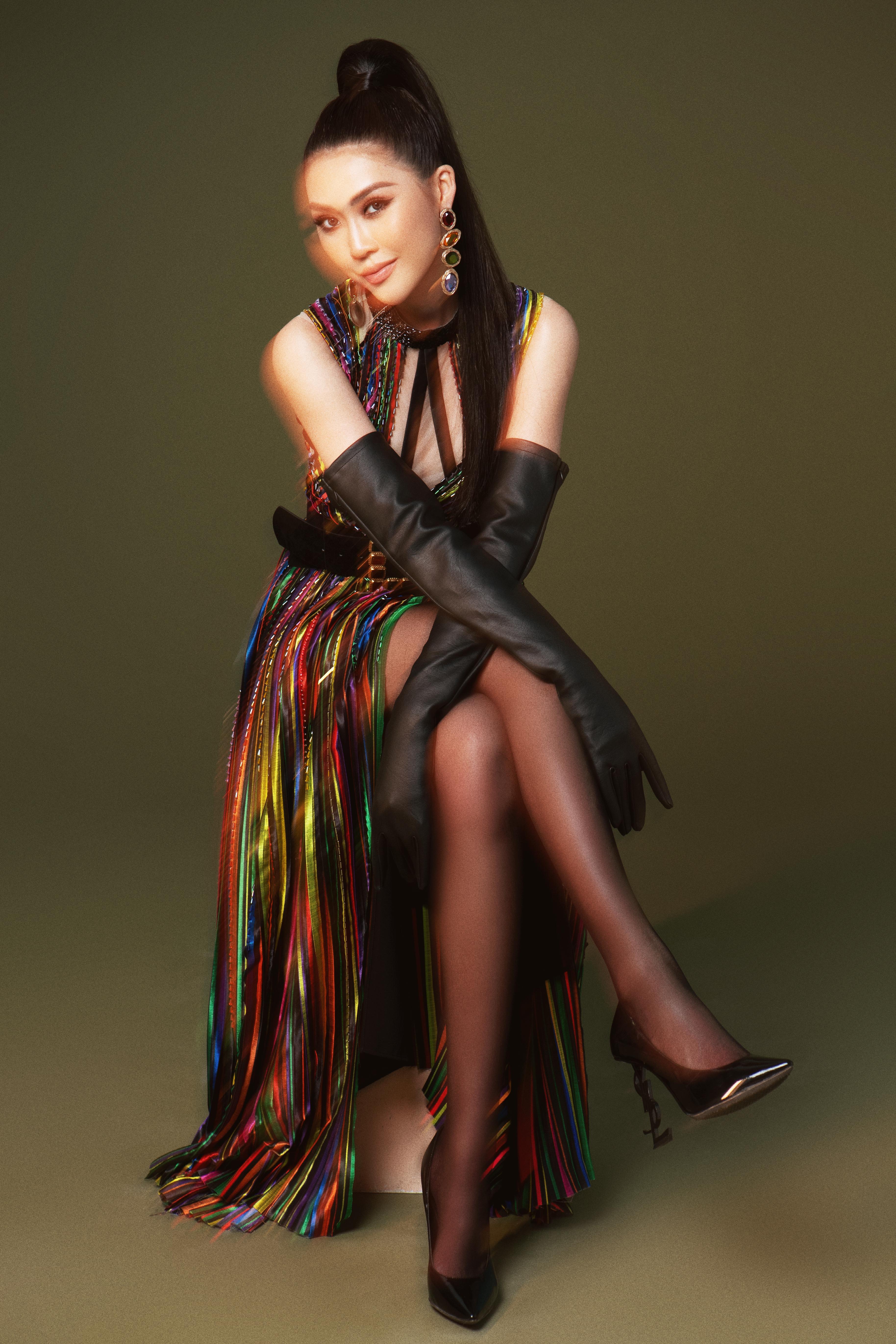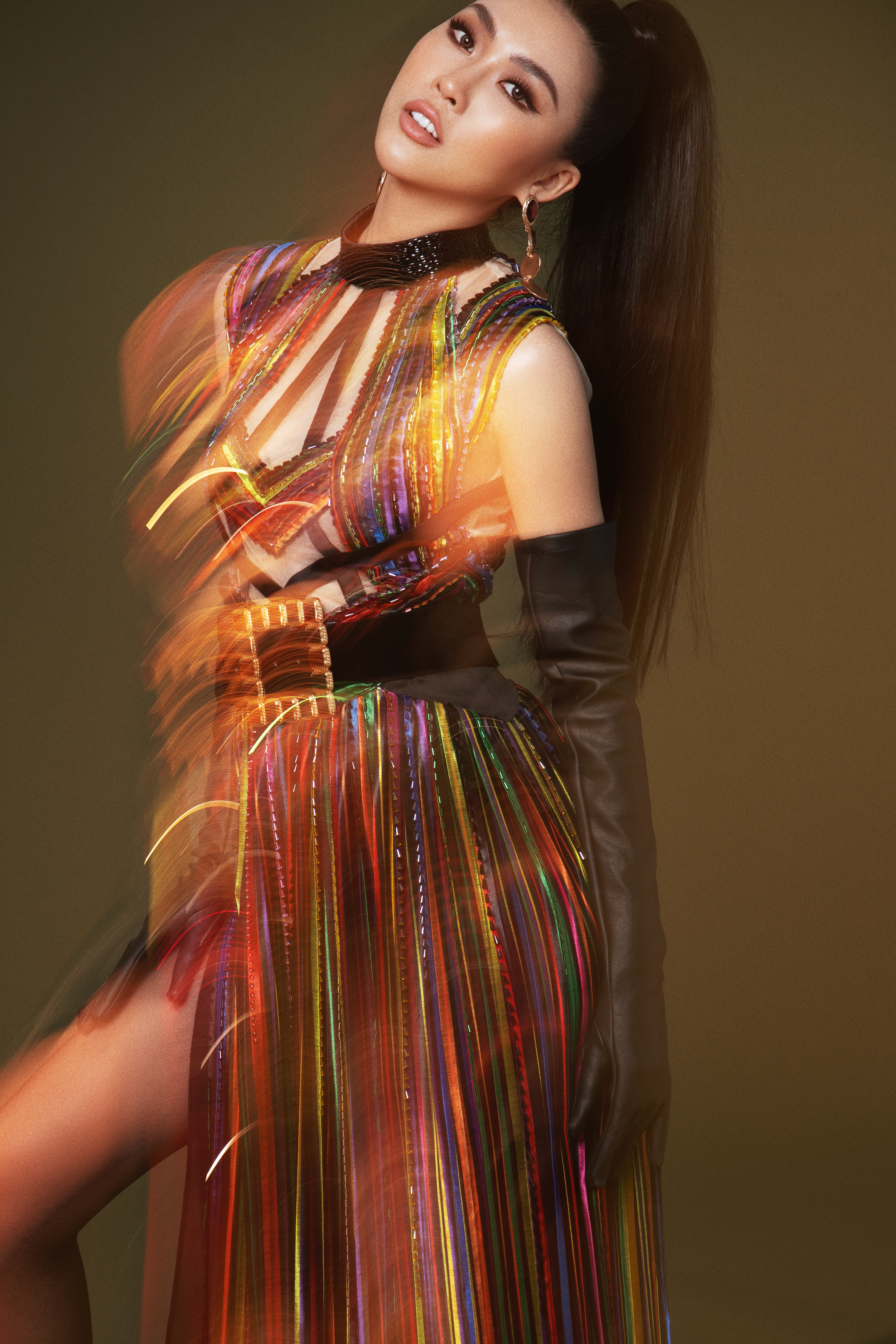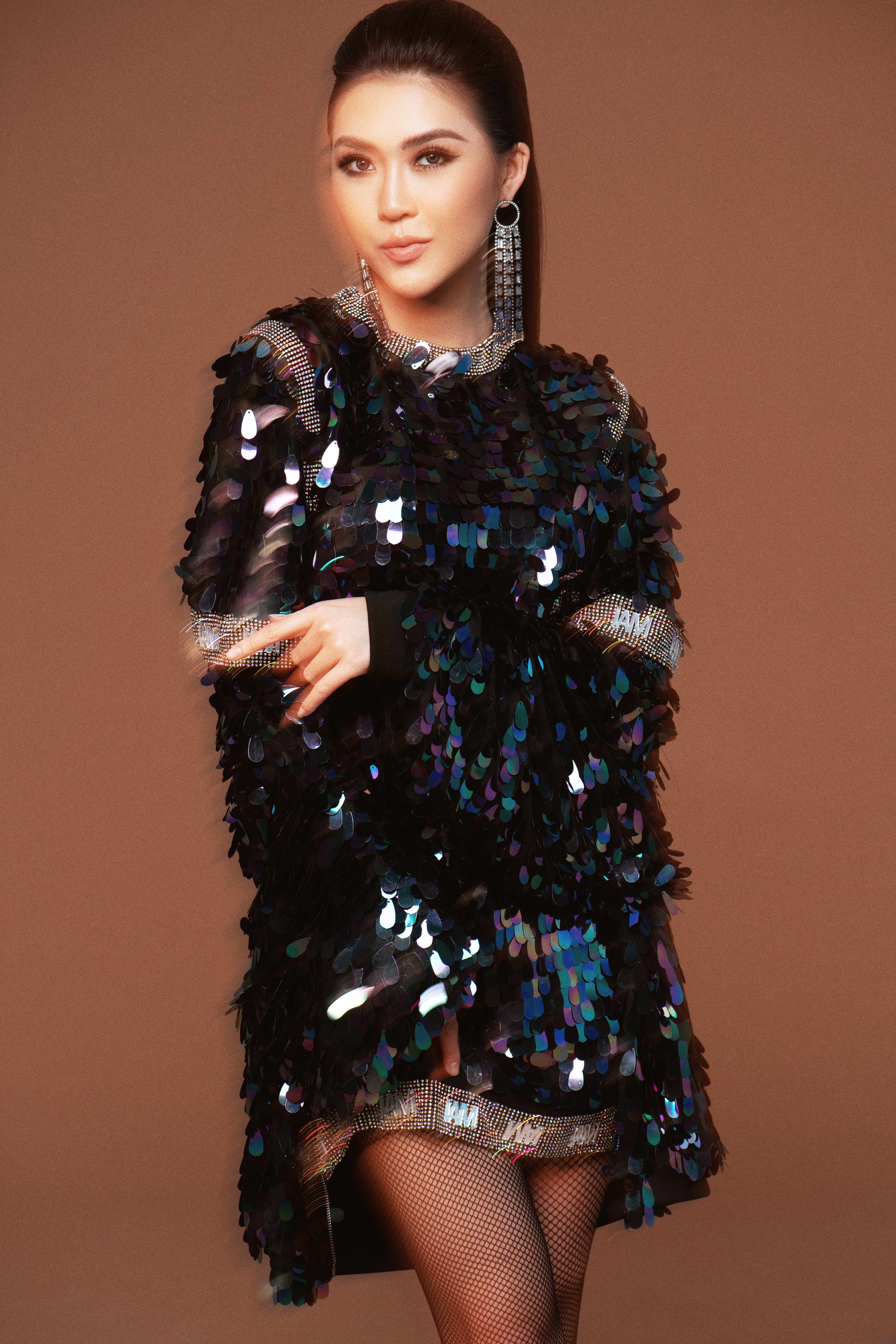 Trong bộ ảnh này, Tường Linh diện những trang phục với cảm hứng thị thành rõ nét. Chất liệu sequin, chất liệu da kết hợp với lông hay hoạ tiết động vật đều là những xu hướng đinh của làng mốt trong năm 2019 được Tường Linh lăng xê triệt để.