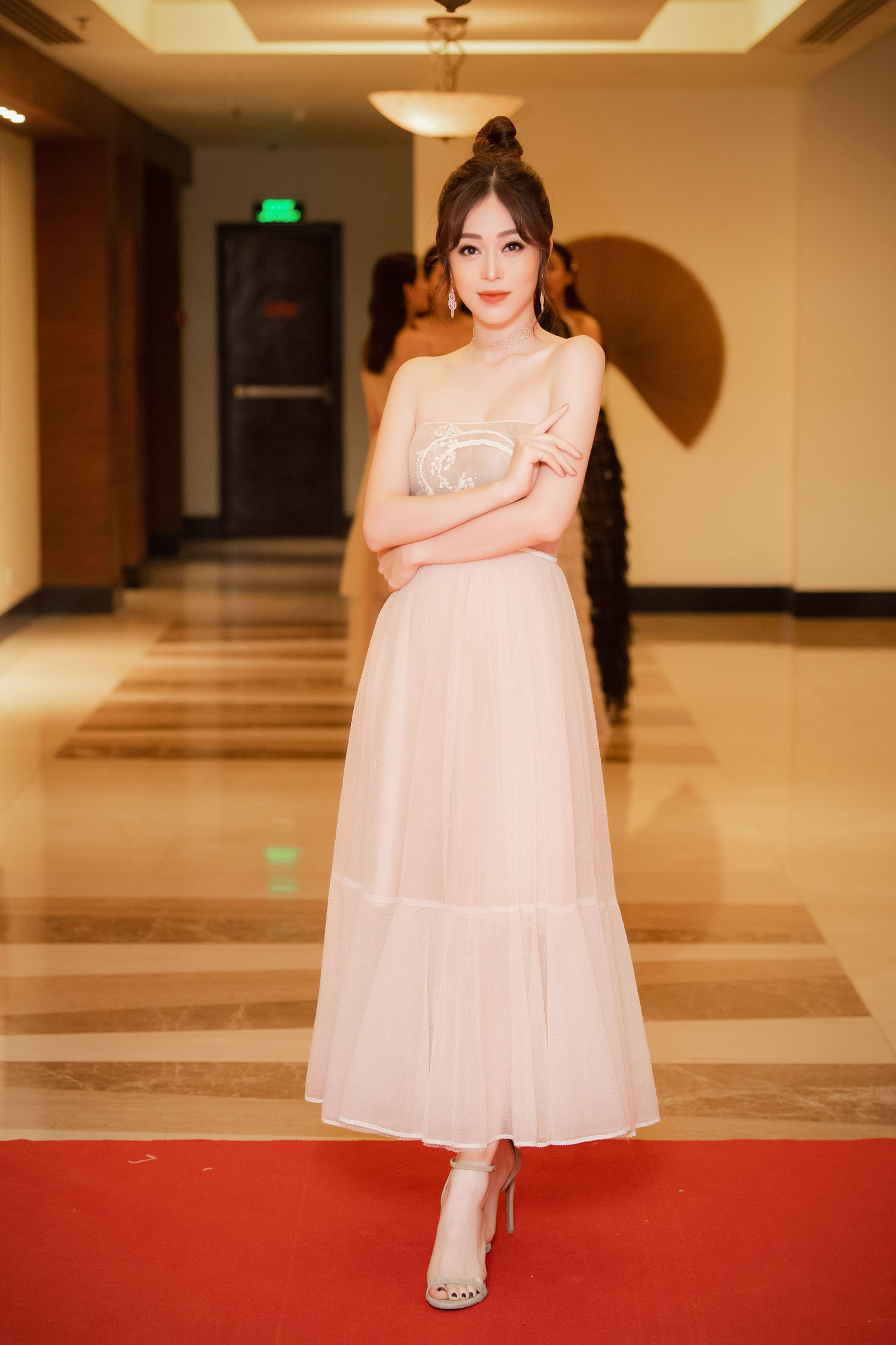 Với trang phục lộng lẫy, chân dài khéo léo khi làm tóc đơn giản, trang điểm nhã nhặn tránh “làm lố”.