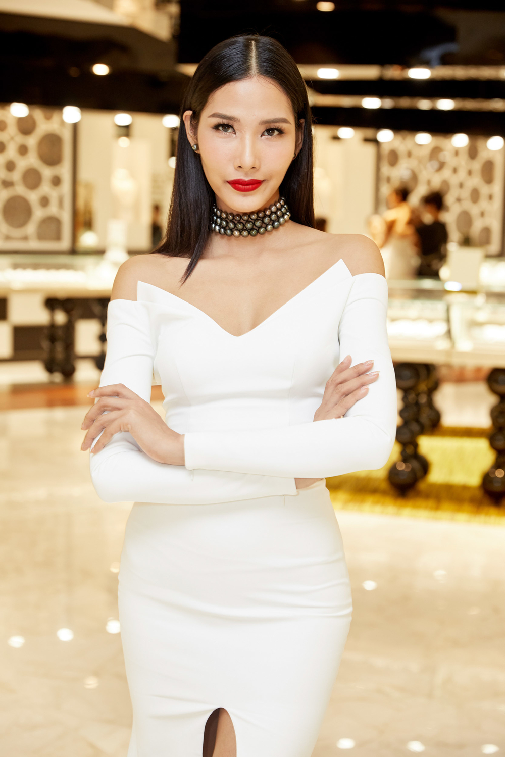 Trong một sự kiện diễn ra ở Phú Quốc cách vài ngày trước đó, Hoàng Thùy vẫn “xài đi xài lại” biểu cảm sắc lạnh như một model này.