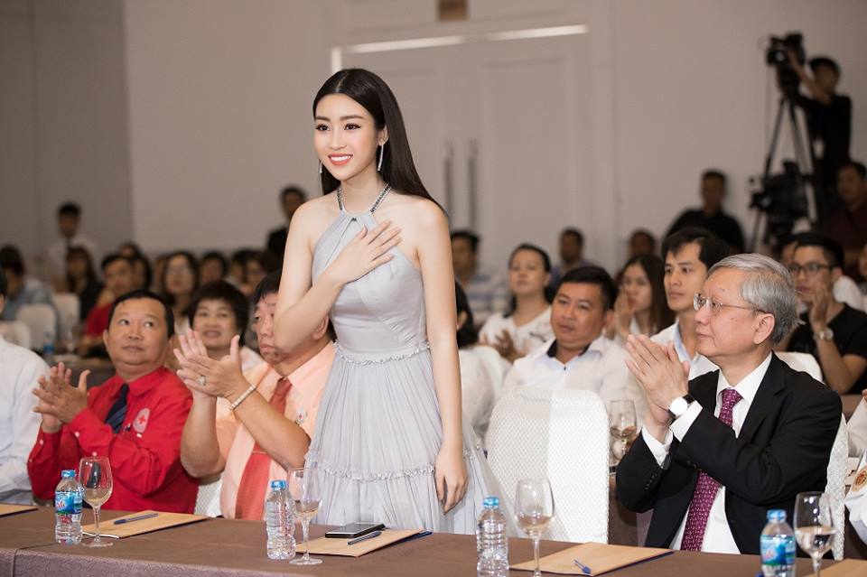 Tham dự họp báo với tư cách là đại sứ chương trình, Hoa hậu Mỹ Linh gây ấn tượng với đầm pastel nhẹ nhàng. Trước đó cô cùng “chàng thủ môn quốc dân” Bùi Tiến Dũng đã có buổi hội ngộ tại một sự kiện. Cặp đôi khiến nhiều người ghen tị và được ghép đôi nồng nhiệt nhưng một mực khẳng định “chỉ là chị em”.