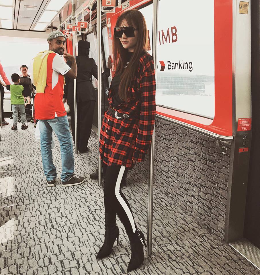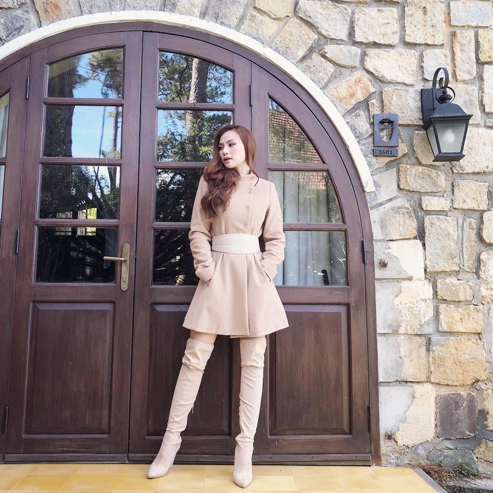 Trong những chuyến đi đầu năm, Thu Thủy diện một “cây” màu beige đẹp mắt gồm bốt cao cổ khoe chân kết hợp với váy dạ.