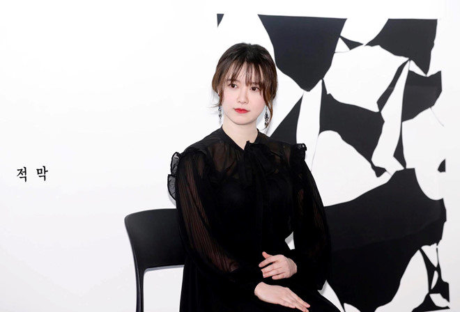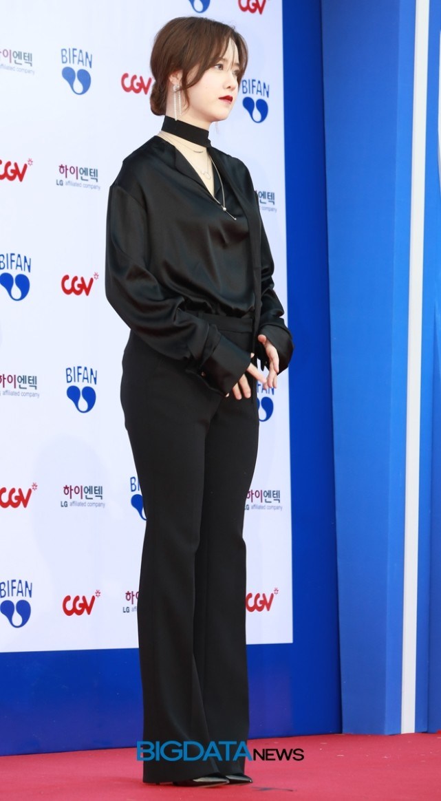Bộ trang phục đen cũng không làm cho Goo Hye Sun thon thả hơn mà tông makeup lại càng làm cô trông già hơn