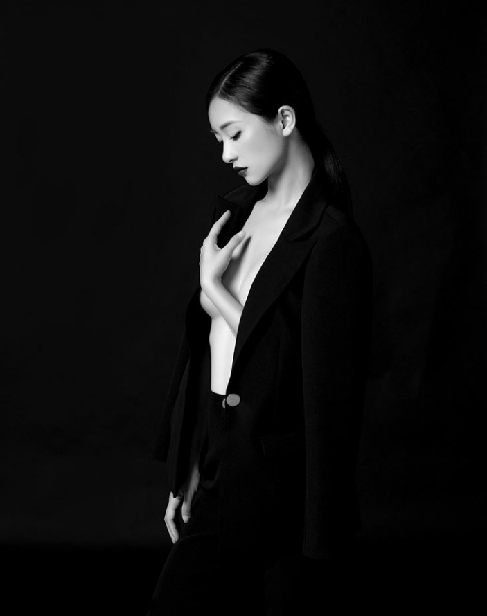 Tông màu trắng đen làm nổi bật vẻ đẹp mỏng manh đầy quyến rũ của cô nàng