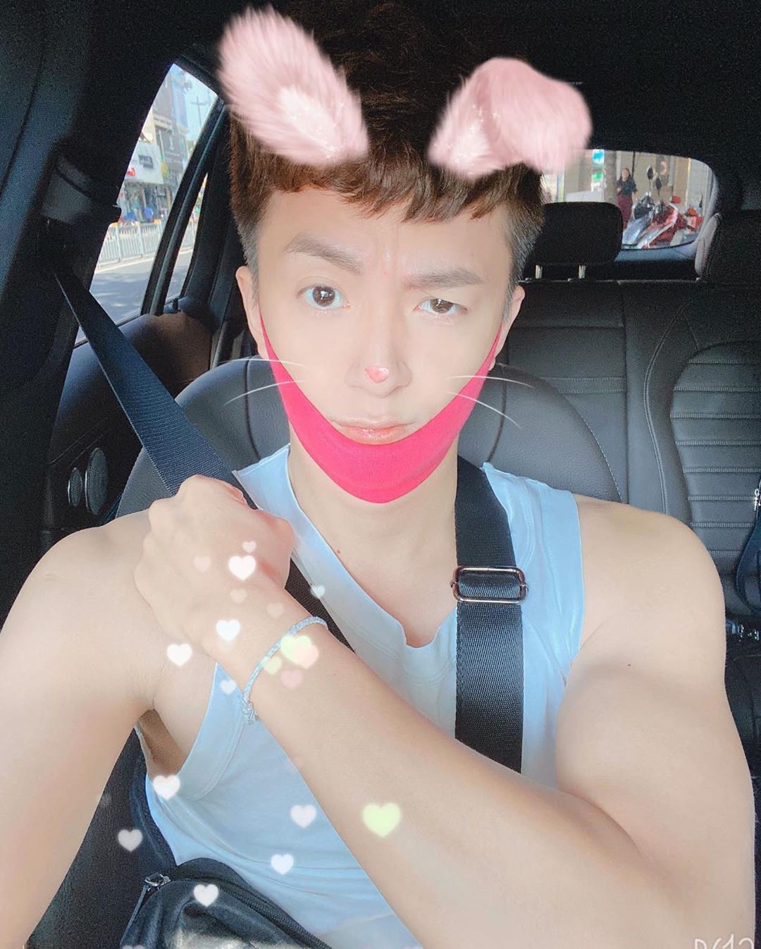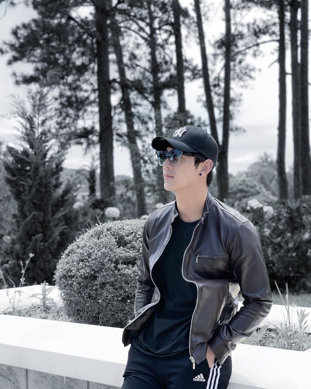 Chỉ với outfit đơn giản gồm áo phông và biker, Song Luân đã chiếm trọn trái tim của bao cô gái.