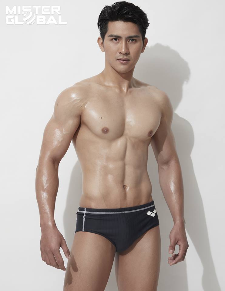 Phô diễn hình thể vạm vỡ, táo bạo với trang phục bikini, dàn Nam vương năm nay khiến người xem khó rời mắt. Trong hình là mỹ nam đến từ đất nước sư tử - Singapore.