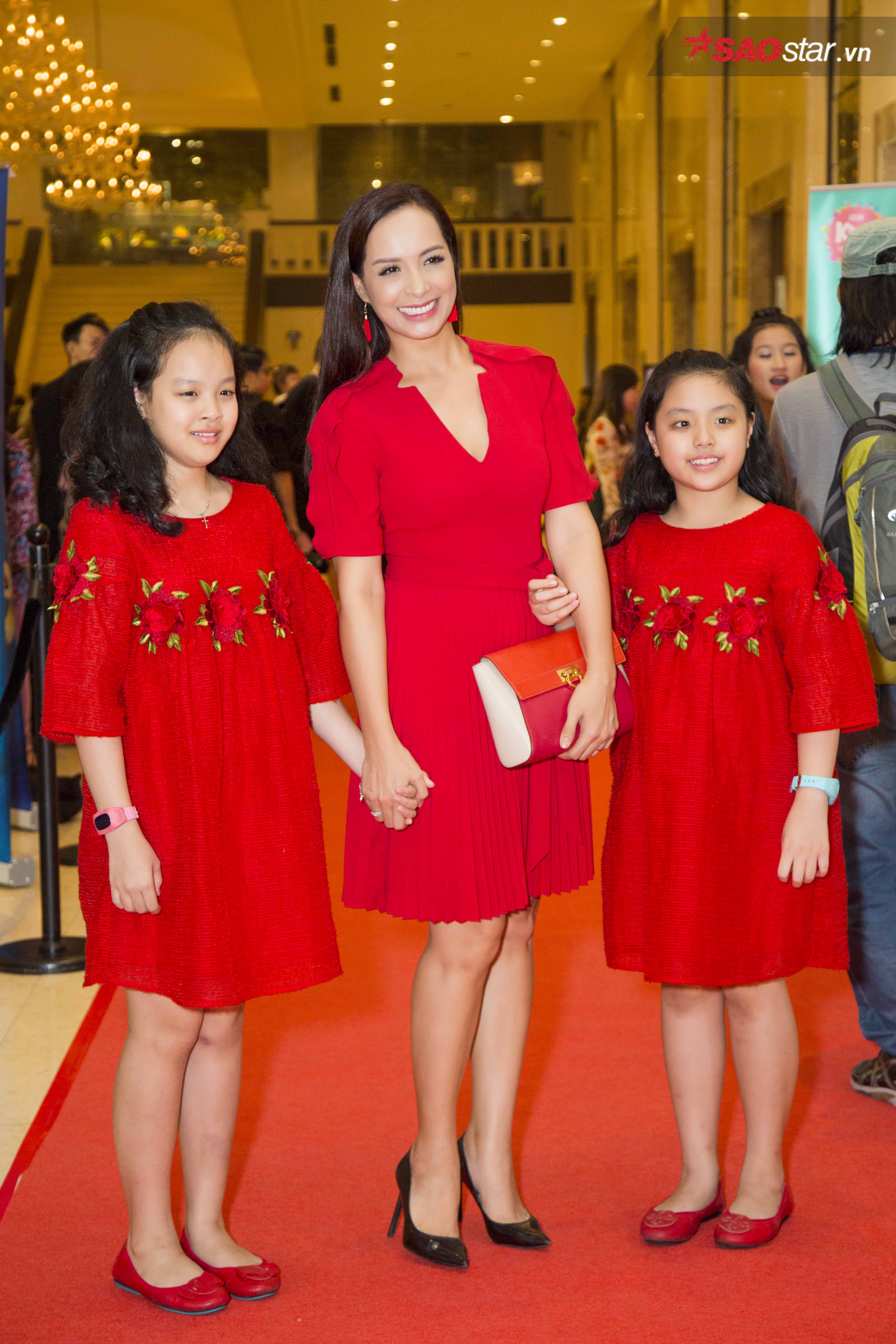 Cựu người mẫu Thúy Hạnh đến sự kiện cùng con gái của mình, cả gia đình siêu mẫu đều chọn đầm đỏ rực rỡ, khiến người đối diện không thể rời mắt.