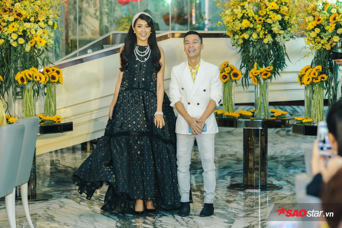 Kỳ Duyên còn được Adrian Anh Tuấn đích thân chỉnh sửa váy áo trong buổi tiệc sau show diễn để có diện mạo chỉn chu nhất.