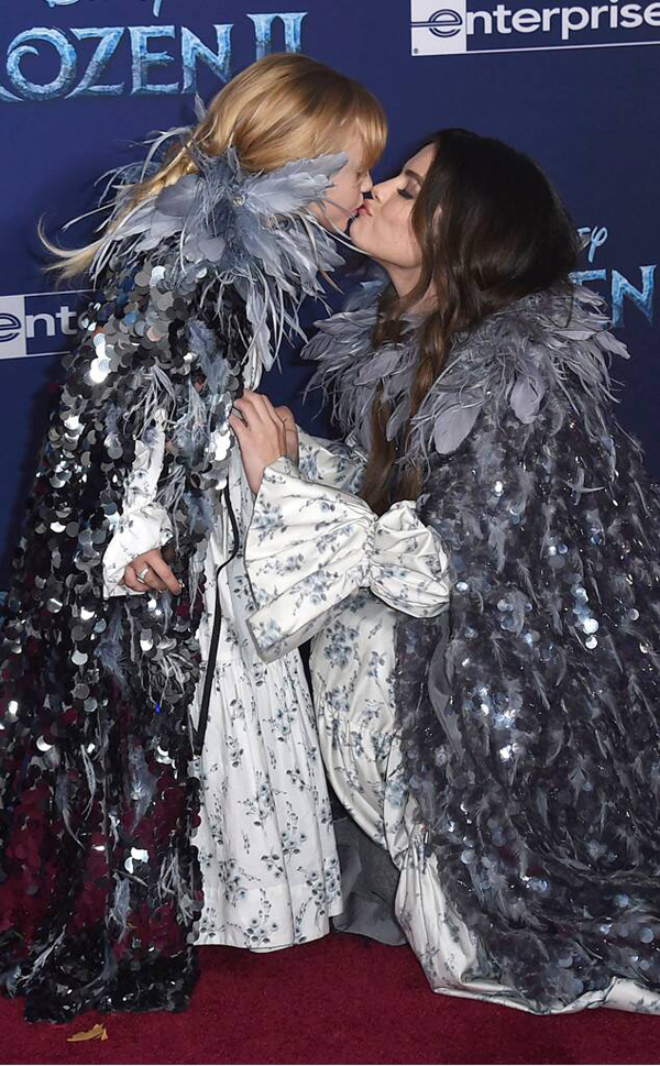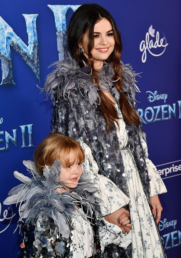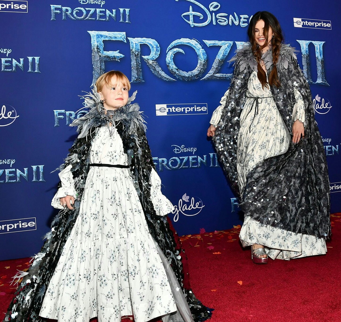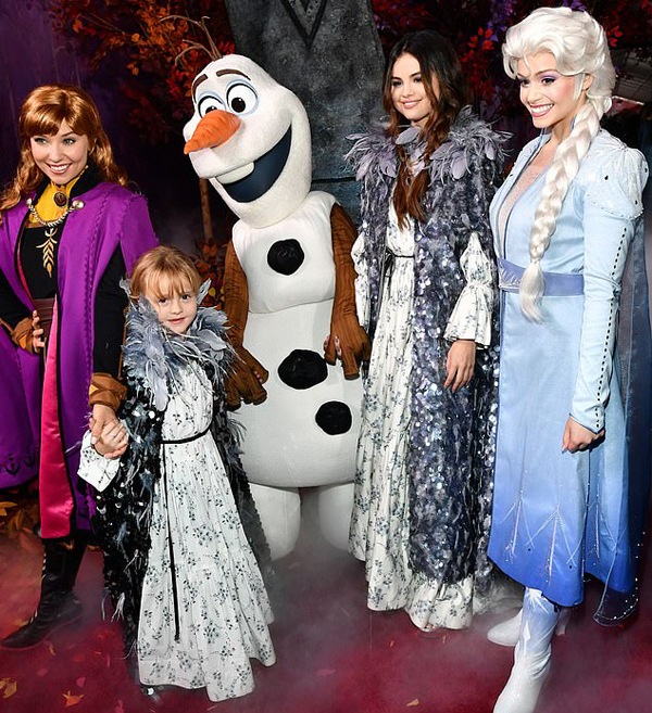 Hai chị em Selena cùn chụp ảnh với những nhân vật quen thuộc của phim Frozen 2.