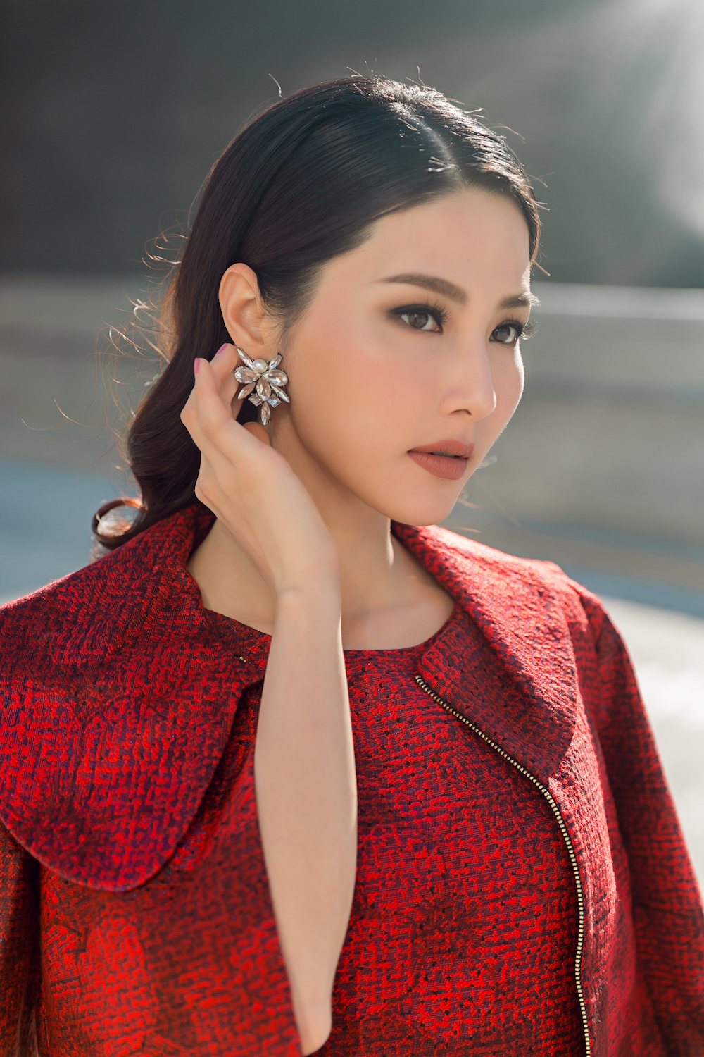 Trong ngày thứ 3, với sự hỗ trợ đắc lực từ stylist Cindy Nguyễn, cô chọn cho mình thiết kế mới nhất trong BST thu đông 2017 của NTK Phương My. Điểm đặc biệt của bộ cánh này là phom dáng xếp phồng độc đáo, chất liệu cao cấp và đường cắt hoàn hảo.