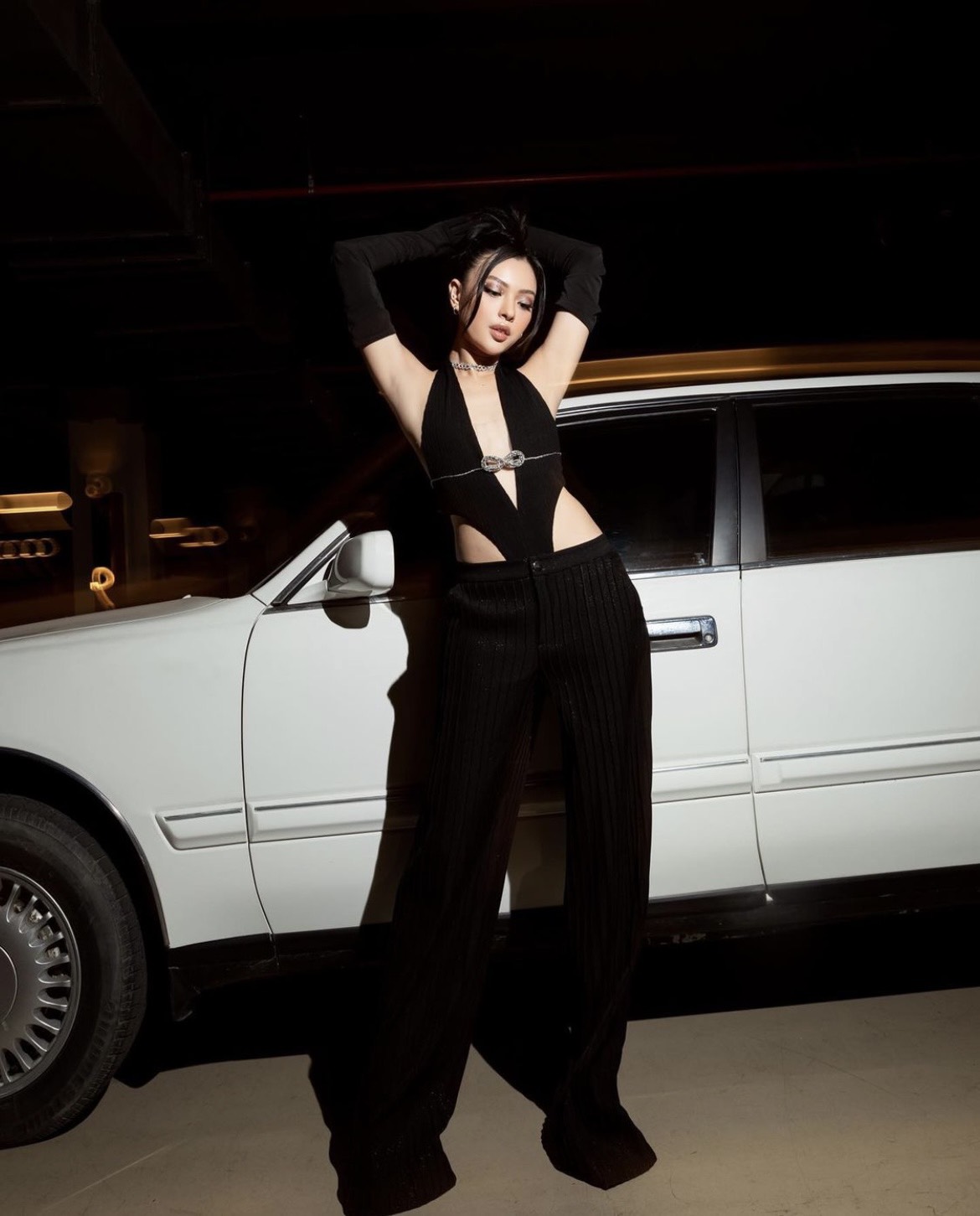 Trước siêu mẫu Hà Anh, Quỳnh Anh cũng từng gây sốt khi diện bộ trang phục không nội y đi casting model tại tuần lễ thời trang. Người đẹp khoe khéo thân hình gợi cảm trong bộ đồ cut-out hở bạo cùng chiếc quần lưng cao ôm dáng.