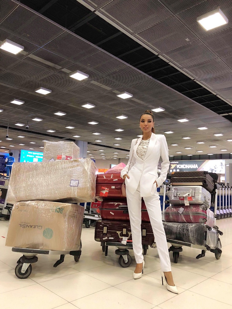 Khối hành lý của cô đã lên tới hàng trăm kg với 10 kiện hành lý lớn cho “cuộc chiến” tại nước bạn