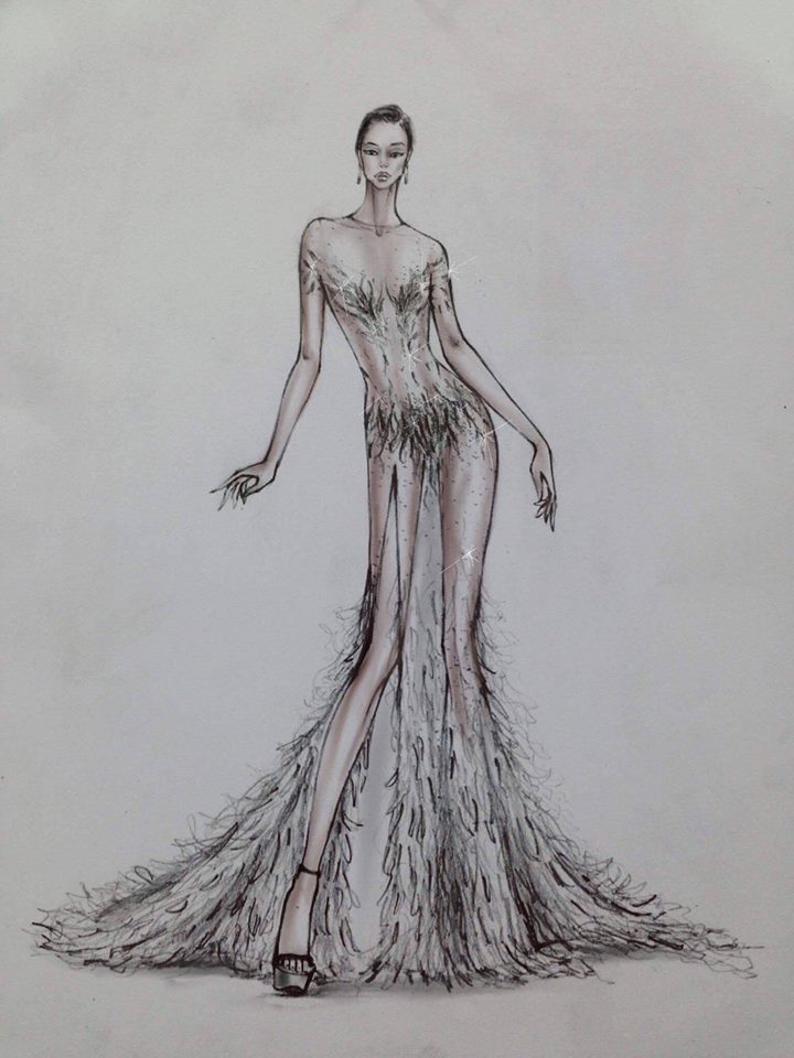 Bài toán đặt ra là Thanh Hòa vẫn giữ nguyên style của mình nhưng làm sao để Leomie Anderson sexy nhất có thể. Và nhà thiết kế tài ba này đã hoàn thành xuất sắc nhiệm vụ của mình. Anh chọn màu pastel tương phản với làn da khỏe mạnh của Leomie Anderson và hoàn thành bản vẽ sketch gửi cho team của cô. Ngay lập tức bản thiết kế nhận được sự hưởng ứng nhiệt tình từ phía Leomie Anderson.