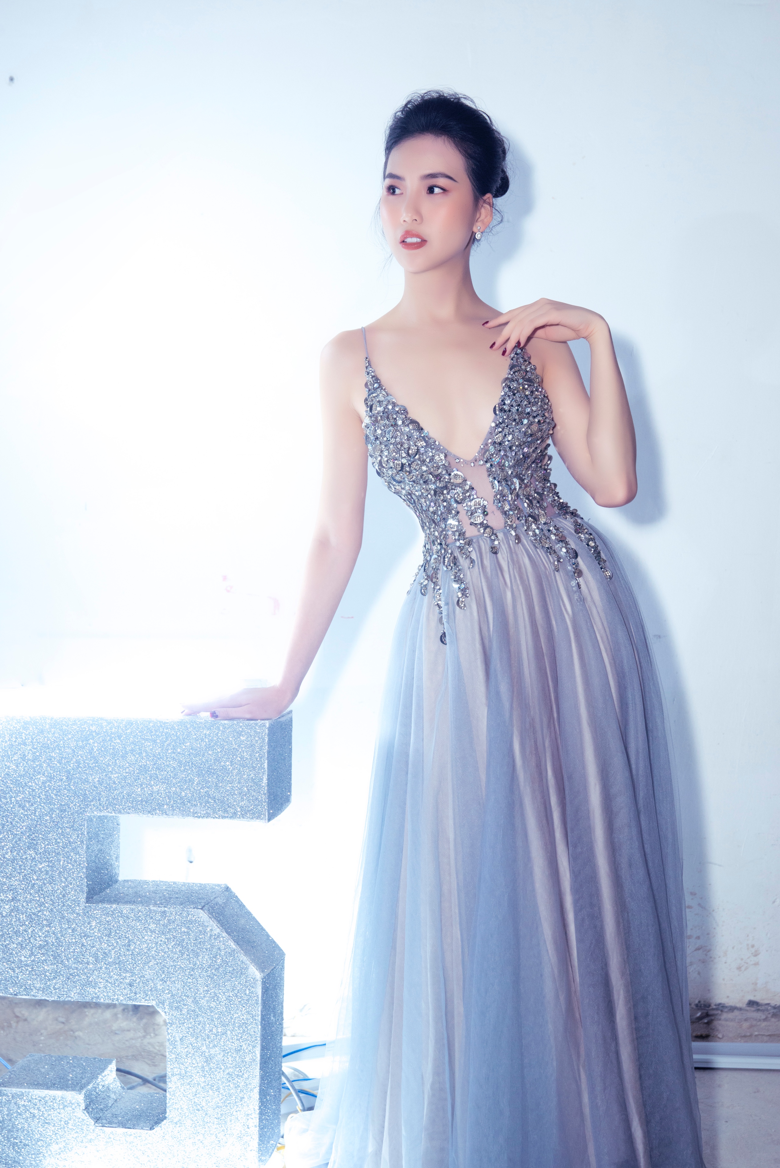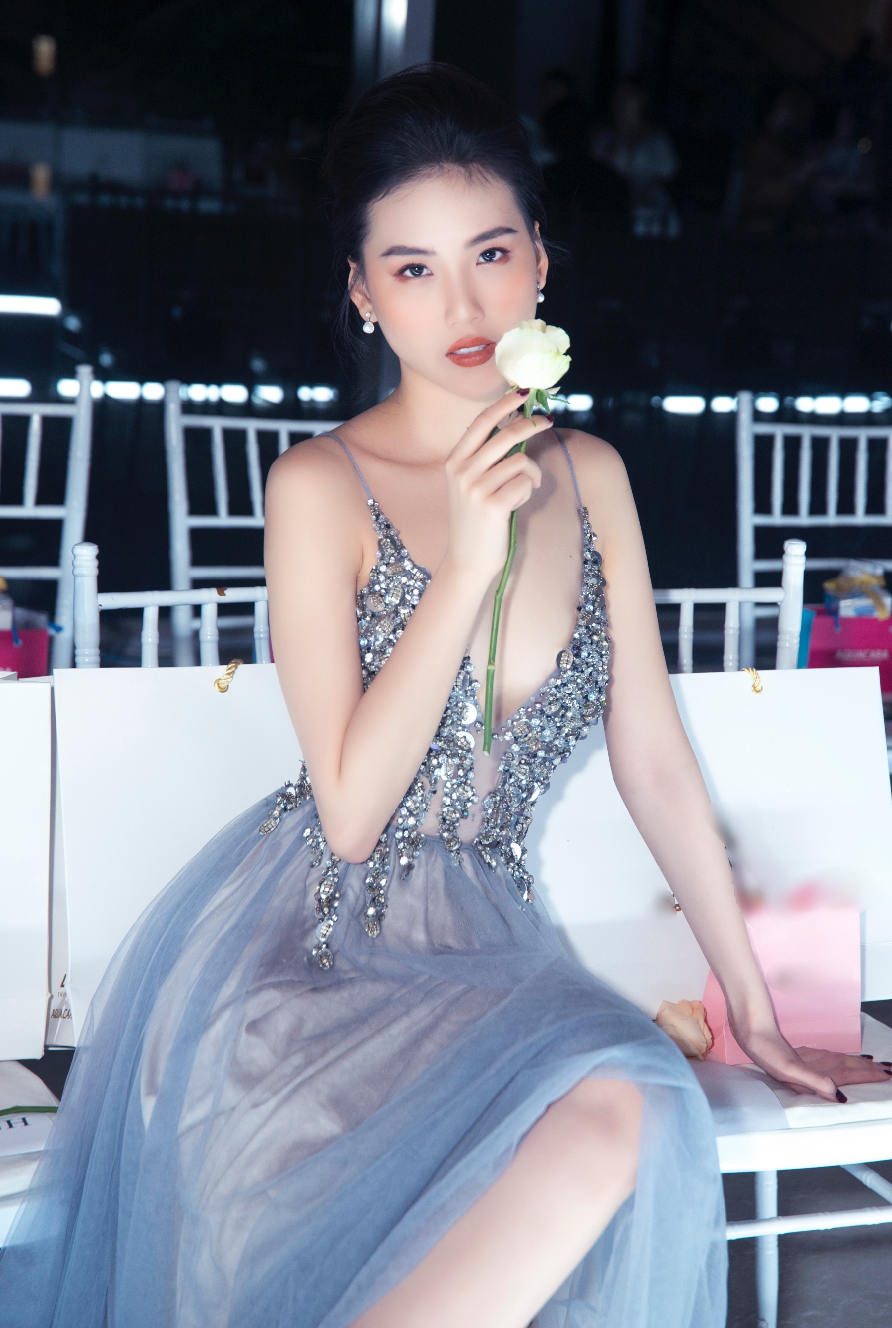 Tối 4/1, Siêu mẫu Quỳnh Hoa đã xuất hiện trong một show diễn thời trang. Người đẹp sinh năm 1998 diện bộ đầm hai dây, xẻ ngực sâu đến tận rốn được thiết kế riêng theo đúng số đo.