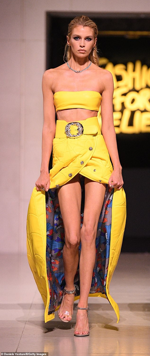 Thiên thần nội y Stella Maxwell cũng trình diễn tại sự kiện với bộ vàng chóe cùng thần thái lạnh lùng khó rời mắt