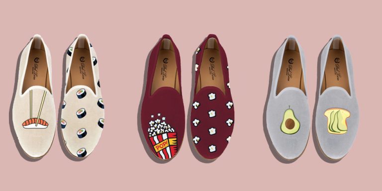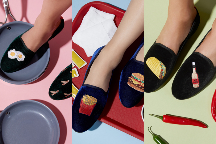 Bộ sưu tập giày mang tên “The Foodie Favorites” với thiết kế 14 mẫu giày lười chất liệu nhung thanh lịch. Mỗi đôi giày được trang trí bằng những hình vẽ món ăn ngộ nghĩnh.
