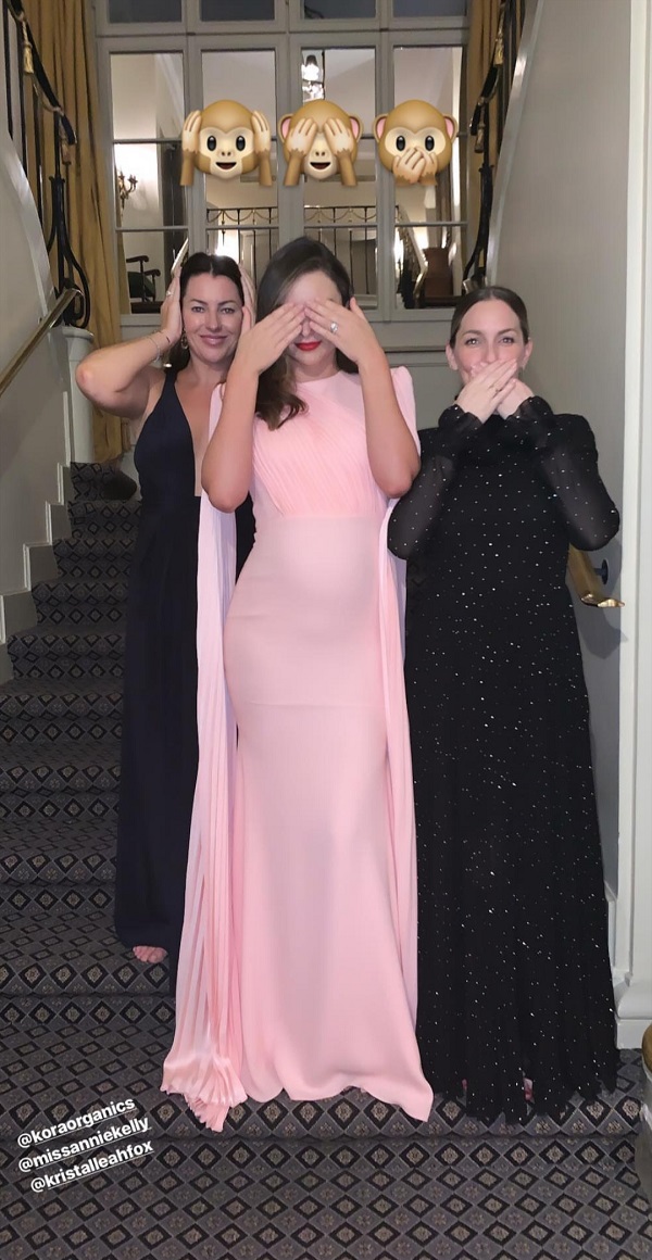 Cận cảnh chiếc váy hồng xinh đẹp lộ rõ bụng bầu được chân dài Úc update trên trang cá nhân instagram stories