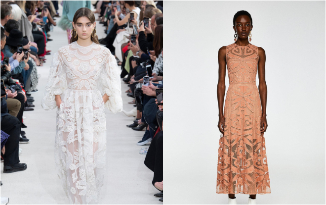 Một thương hiệu khác cũng sao chép váy trắng cắt lazer họa tiết hoa của Valentino trong bộ sưu tập (BST) Xuân - Hè 2019 nhưng thay đổi tí phần tay áo
