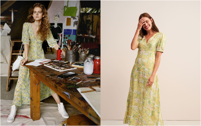 Thiết kế nằm trong BST Xuân - Hè 2019 của Rouje, được thương hiệu đình đám Tây Ban Nha Mango copy y chang từ họa tiết , mẫu mã bày bán trên kệ với giá khoảng 60 USD ( tầm 1.392.000 VND) giá mềm hơn rất nhiều so với hãng lớn kia