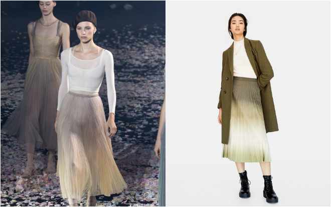 Nhà mốt Dior là một trong những nhà mốt bị các thương hiệu bình dân sao chép BST mới nhiều nhất. Các thiết kế áo đến chân váy vải voan, màu sắc đều được copy chang bản thật.