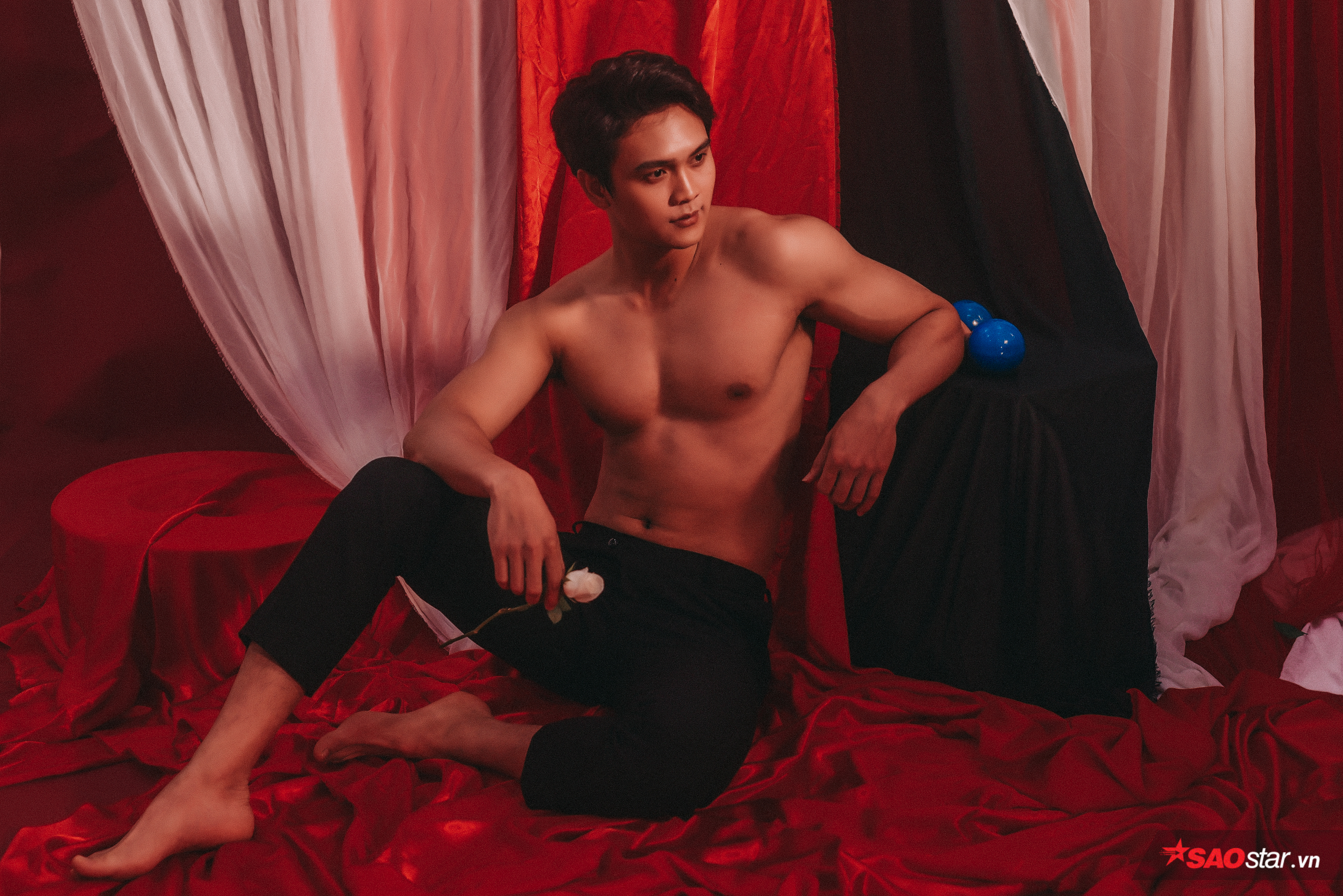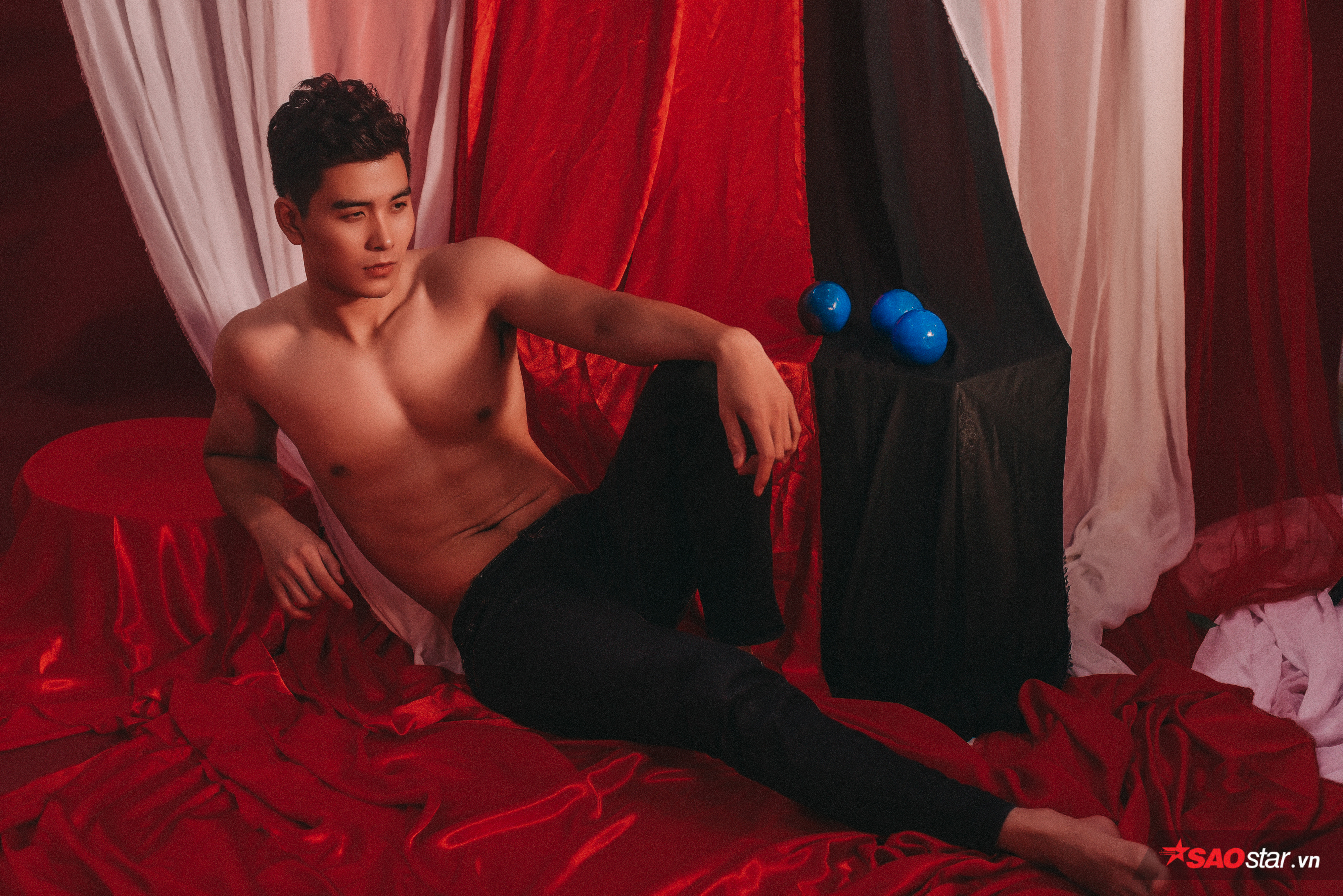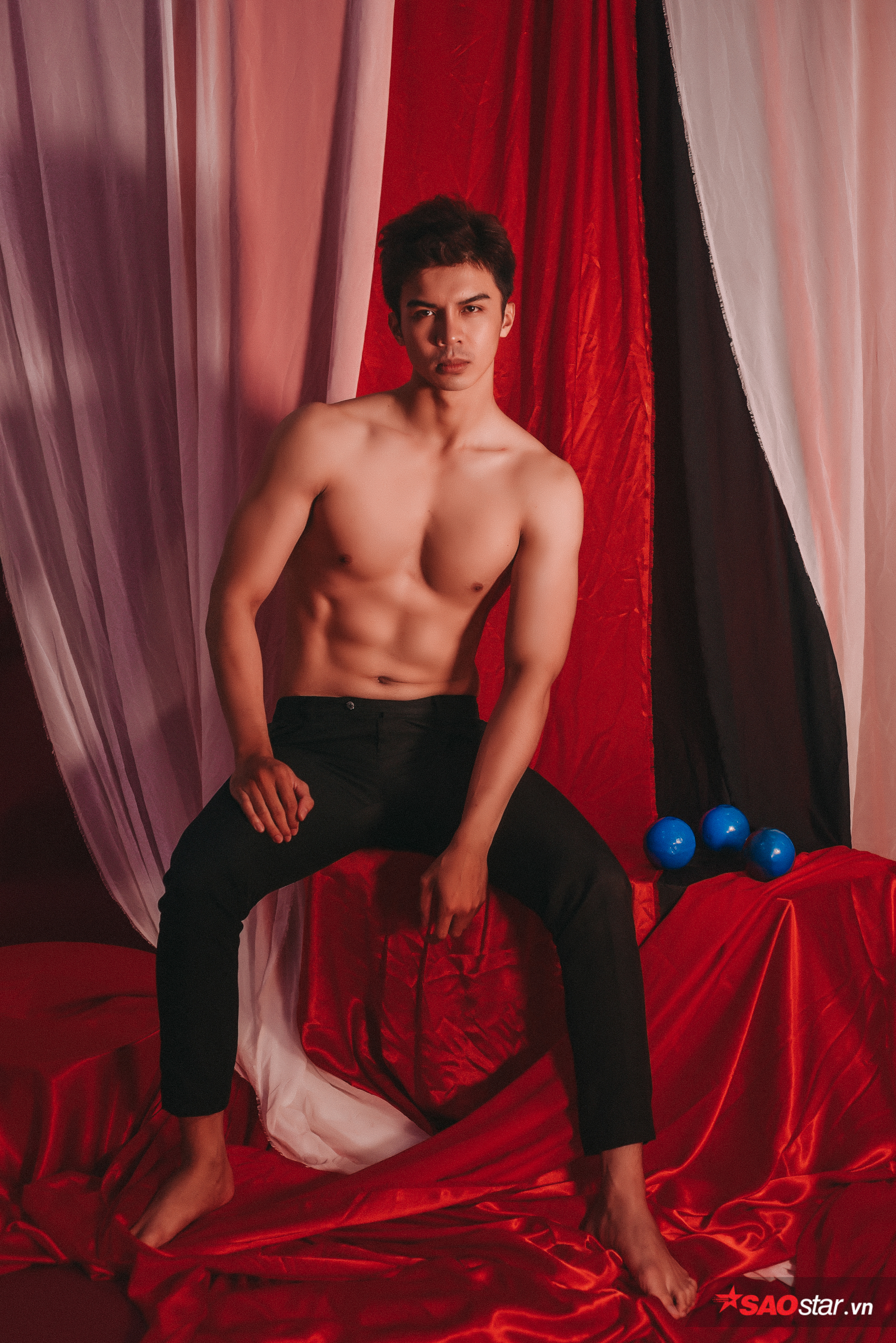 Trịnh Bảo thường tập trung vào lối diễn bằng mắt thay vì khoe cơ bắp như nhiều thí sinh nam khác. Bộ ảnh được sự trợ giúp của chuyên gia make up Yilan Đặng.