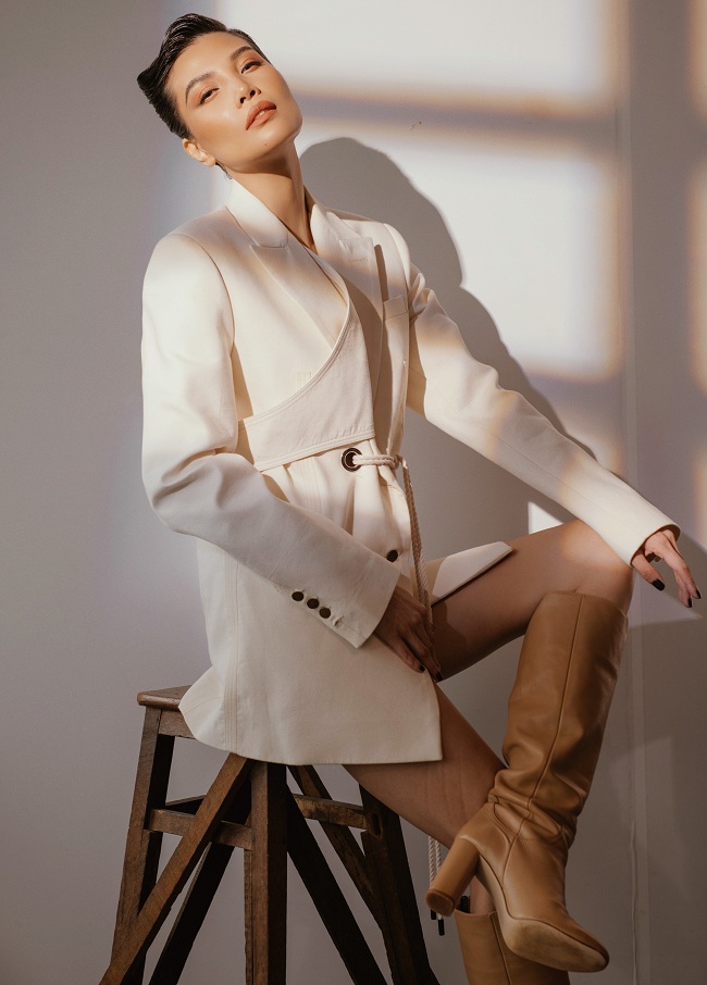 Trong bộ ảnh mới, siêu mẫu Vũ Cẩm Nhung đã lên ý tưởng để phái đẹp học hỏi được cách lên đồ với phong cách menswear cá tính thông qua những bộ suit nam tính cách điệu và các kiểu áo blazer phóng khoáng. Menswear là cách mặc sử dụng đồ dành cho đàn ông nhưng được biến tấu đê trở nên thanh lịch, cá tính hơn với cơ thể phụ nữ.