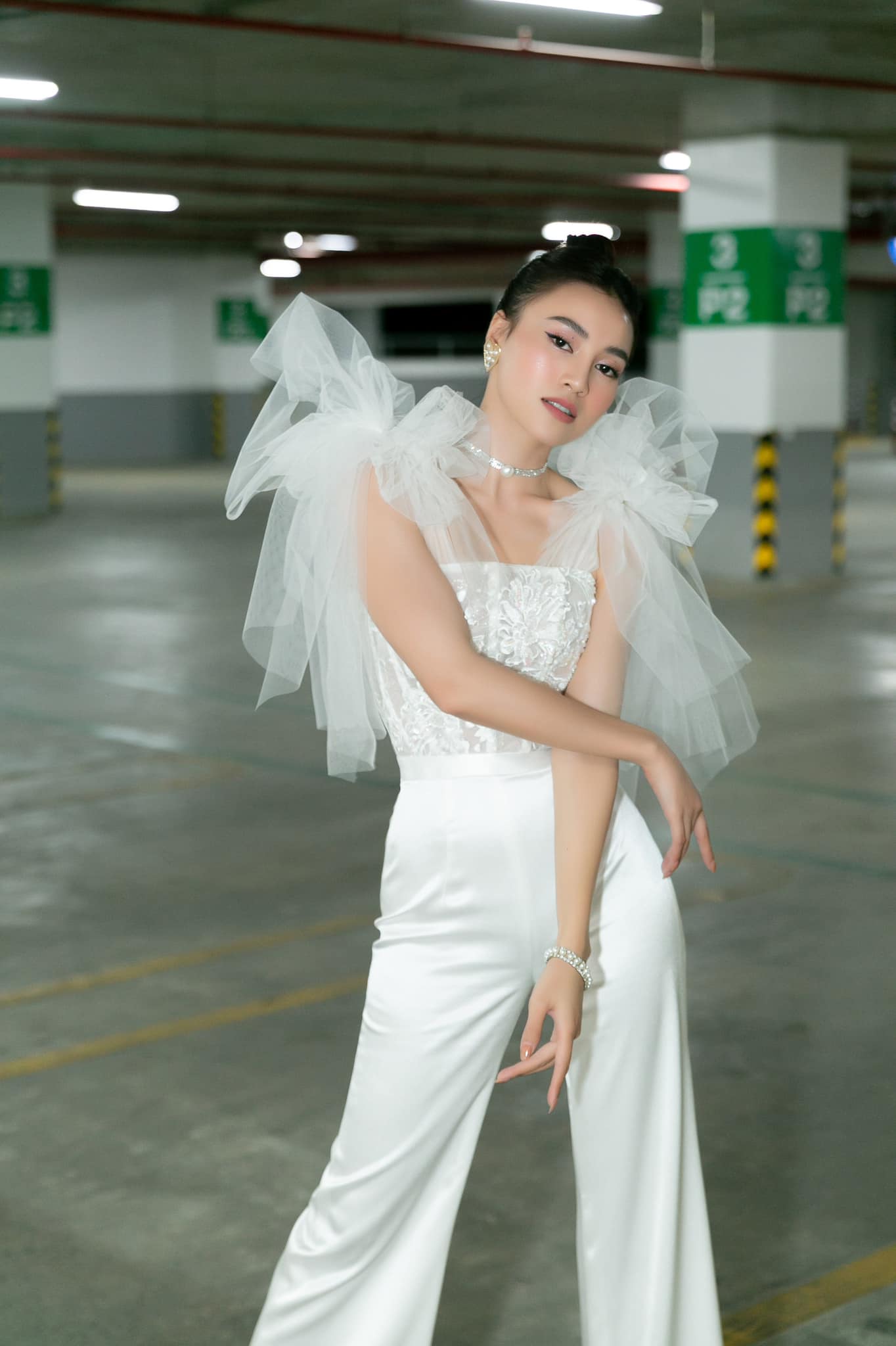 Chiếc váy không chỉ làm tôn lên làn da trắng sáng mà còn khoe được chiếc cổ cao thanh tú, phần xương quai xanh tuyệt đẹp của Ninh Dương Lan Ngọc.