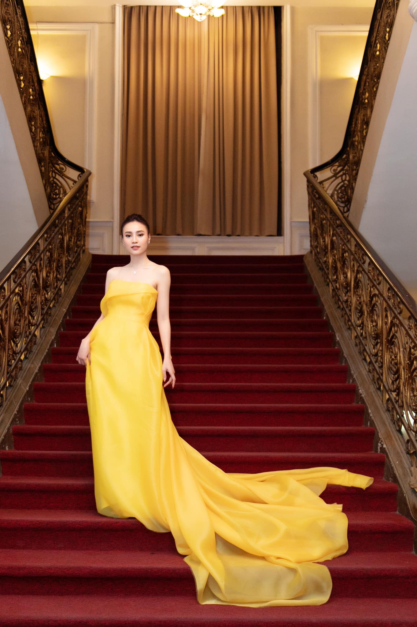 Trong một sự kiện gần đây, bóng hồng làm bao người chẳng thể rời mắt khi thả dáng trong chiếc váy cúp ngực, mang tông màu vàng như nắng.