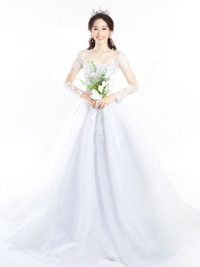 Những bức ảnh với váy áo cô dâu của á hậu đều toát lên sức hút rất riêng, vô cùng quyến rũ.