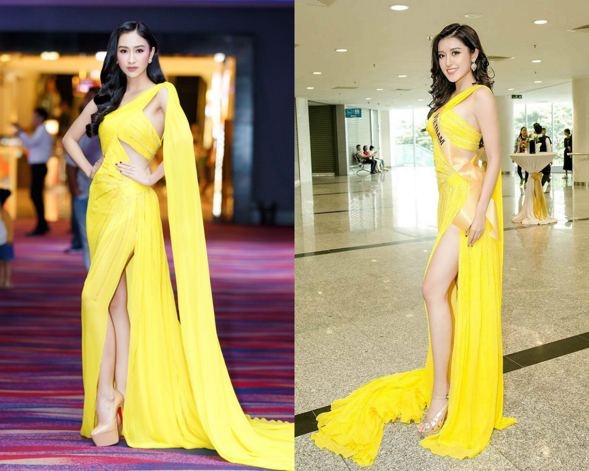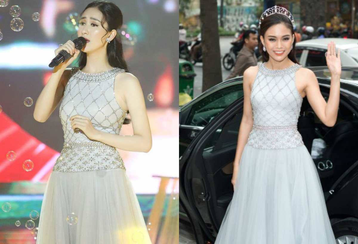 Á hậu Mâu Thủy lấn lướt Hà Thu khi lần đầu chung đụng váy áo.