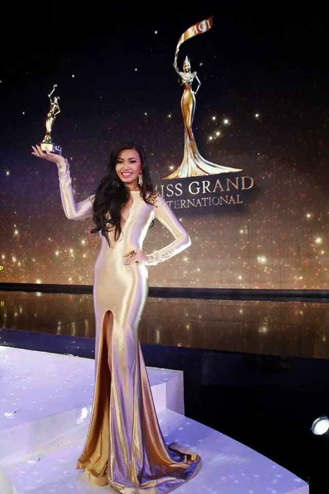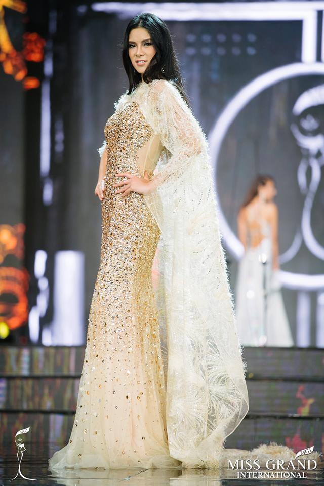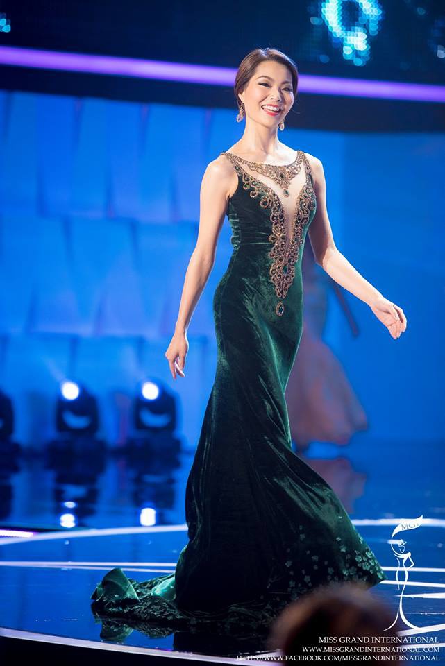 Trong đêm chung kết cô diện một chiếc váy khác lên nhận giải “Best Evening Gown” nhưng màu sắc vẩn bắt đúng gu của Miss Grand International.