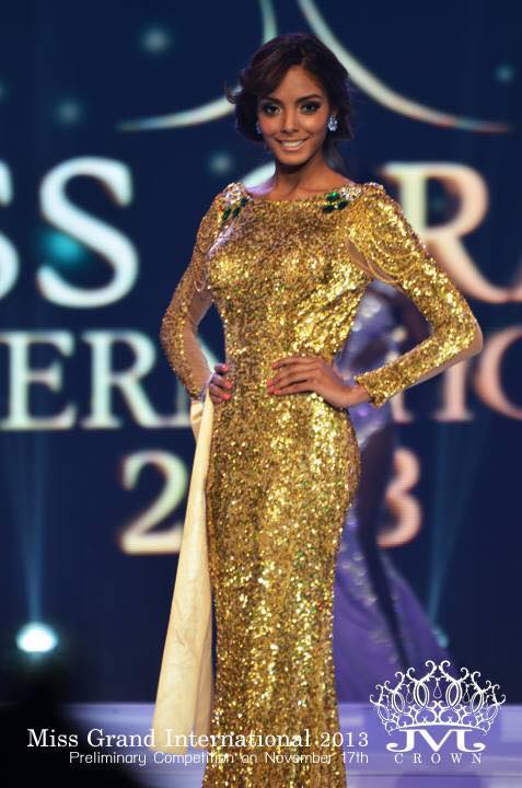 Năm 2013 người đẹp đến từ Cộng hòa Dominica - Chantel Martinez trở thành người đầu tiên được vinh danh “Best Evening Gown”. Thiết kế sử dụng tông ánh kim màu vàng gold bắt mắt.