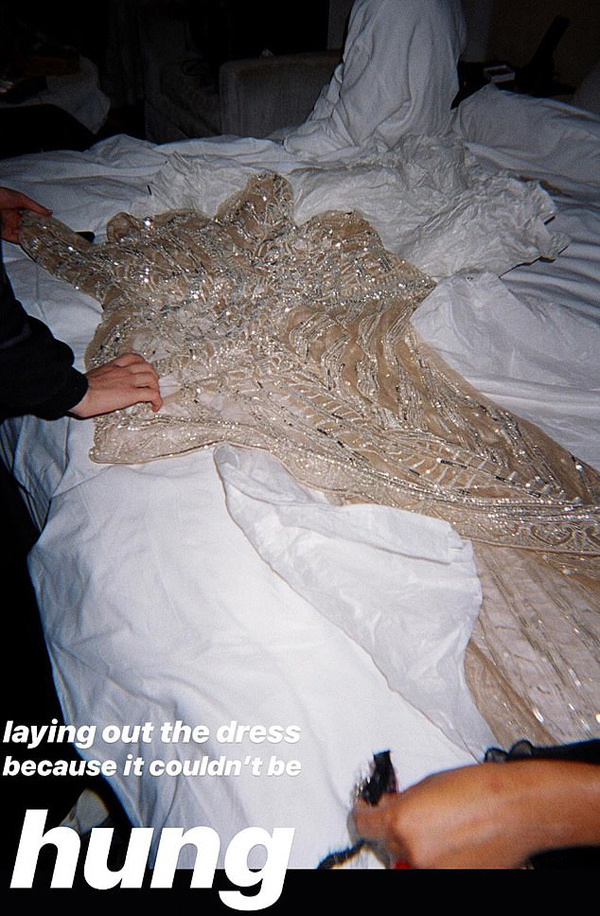 Chiếc váy này không thể treo móc như bao trang phục khác mà phải trải dài lên giường