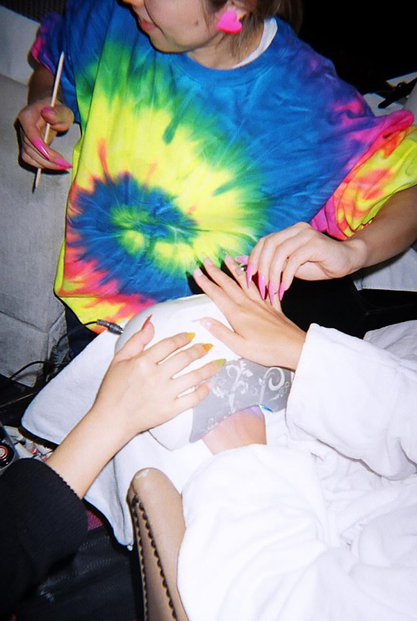 Người mẫu nội y còn có cả ekip giúp cô tân trang móng tay chân
