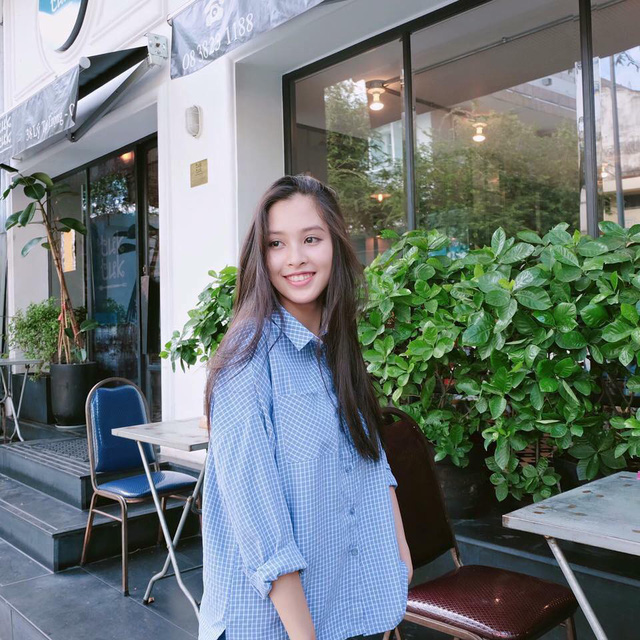 Đôi khi, Tiểu Vy cũng cực đơn giản với áo sơ mi freesize